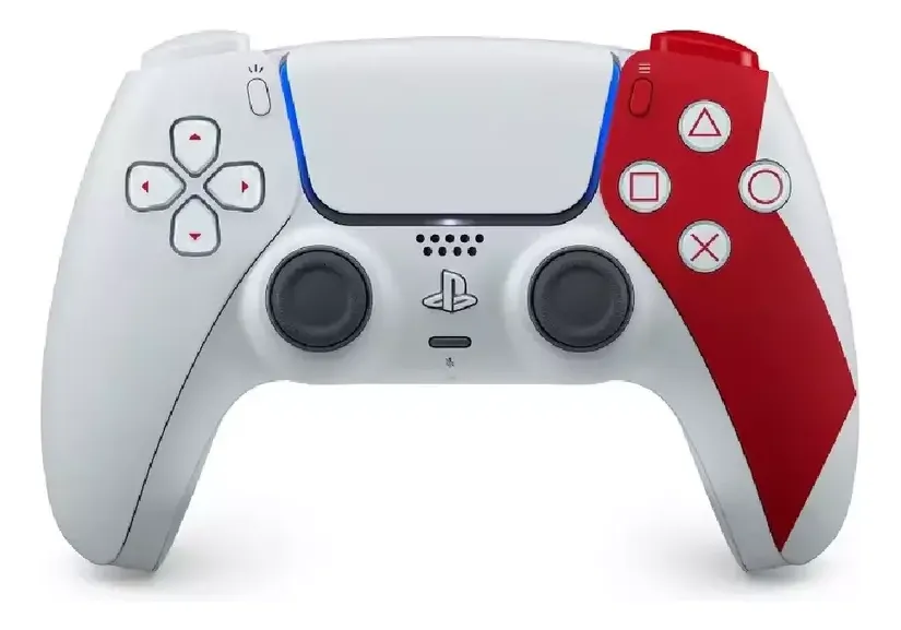 Joystick inalámbrico Sony PlayStation 5 DualSense edición limitada God of War 20th Anniversary. Presenta un diseño exclusivo inspirado en Kratos, con acabado blanco ceniza y detalles en rojo que representan su icónico tatuaje. Incluye todas las funciones del DualSense: retroalimentación háptica, gatillos adaptativos y micrófono integrado para una experiencia inmersiva. Compatible con PS5, PC y dispositivos móviles. Ideal para coleccionistas y fanáticos de la saga.