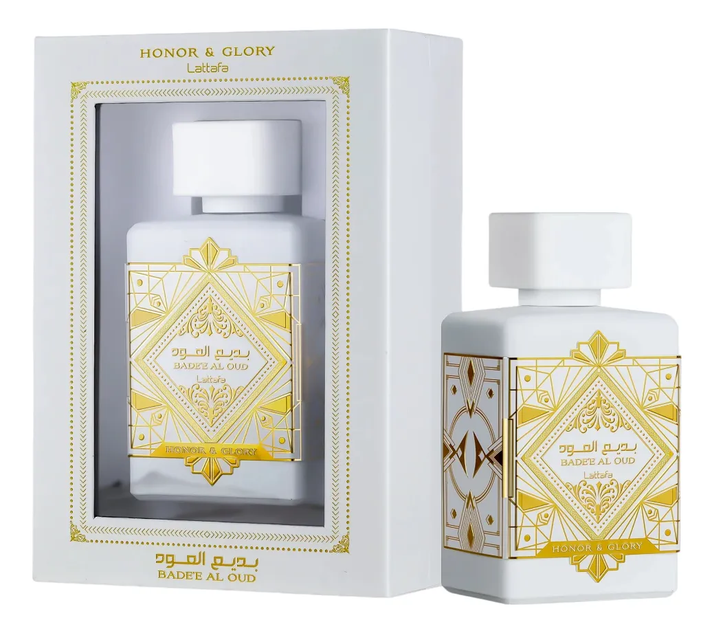 Una auténtica joya de la perfumería árabe que redefine el lujo y la sofisticación. Este perfume no solo huele bien: también luce increíble en tu tocador. Es una opción perfecta para regalar o regalarte, sabiendo que estás invirtiendo en un aroma premium, duradero y con gran presencia. No dejes pasar la oportunidad de sumarte a quienes ya lo consideran una de las mejores creaciones de Lattafa. ¡Viví la experiencia Honor & Glory hoy adquiriendo el tuyo ! Si te gustan los perfumes que se sienten potentes, con cuerpo, dulces pero sofisticados, con ese toque oriental envolvente que dura horas en piel y aún más en la ropa... entonces sí, Honor & Glory es exactamente lo que buscás. Además, es un excelente dupe de fragancias nicho de alto costo, pero a un precio totalmente accesible, lo que lo convierte en una opción inteligente para los amantes del buen perfume. Su nombre lo dice todo: Honor & Glory está pensado para quienes no pasan desapercibidos, para quienes buscan dejar una marca en cada lugar que pisan. Un eau de parfum envolvente, opulento y lleno de carácter, diseñado para destacar y elevar tu presencia. Desde su apertura, esta fragancia impresiona con notas chispeantes y especiadas, que se funden con un corazón floral y dulce perfectamente equilibrado. Pero lo más impactante llega en su fondo, donde el oud, la vainilla, el ámbar y la madera se combinan para crear una estela cálida, profunda y envolvente. ¿El resultado? Una fragancia intensa, duradera y adictiva, con excelente proyección, ideal para días fríos, noches especiales o momentos en los que queréis brillar.